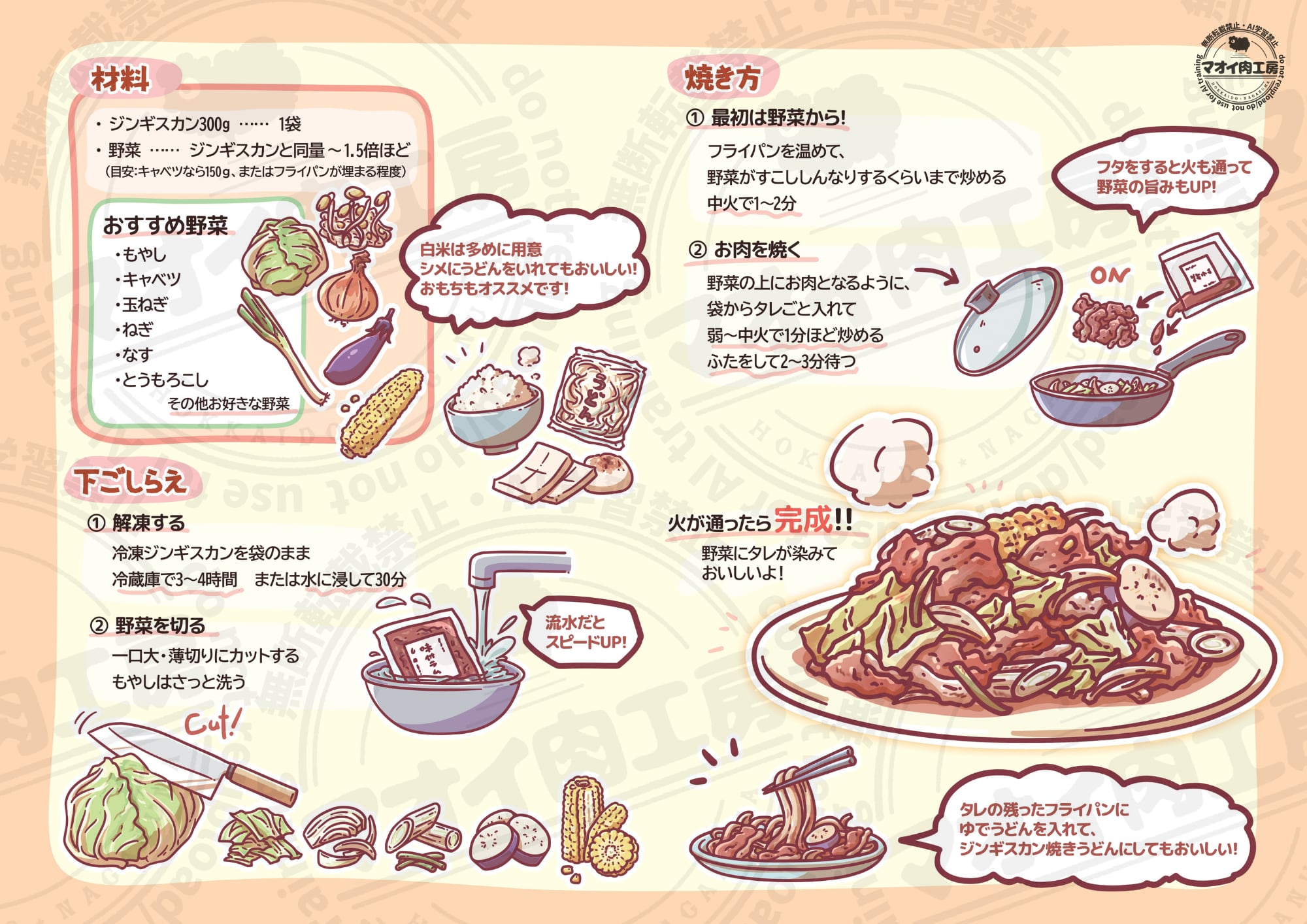 ECでは、お家で手軽にジンギスカンをお楽しみいただけるよう「マオイ肉工房流・おいしいジンギスカンの焼き方」を同封しています。